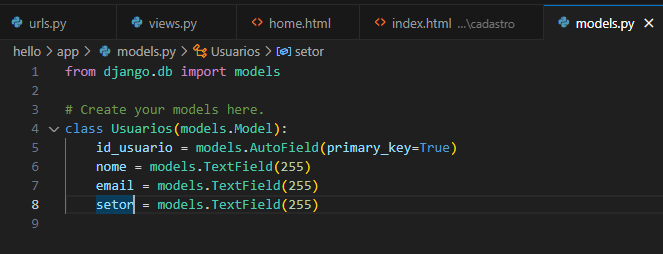Vamos abrir o arquivo models.py dentro da pasta da aplicação e vamos preparar o nosso modelo.