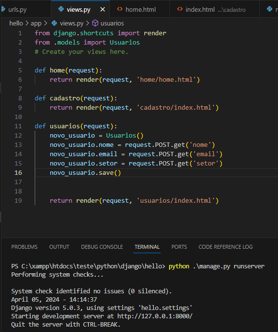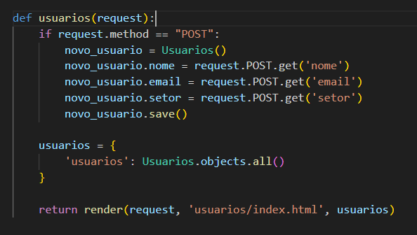 Agora vamos fazer uma alteração na função def usuarios para conseguir listar os usuários logo após o envio de um novo usuário.