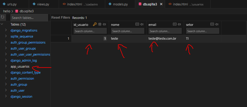 Rode o servidor e teste o formulário, após clicar em salvar no formulário, visualize a sua tabela no banco e verifique se criou o usuário informado.